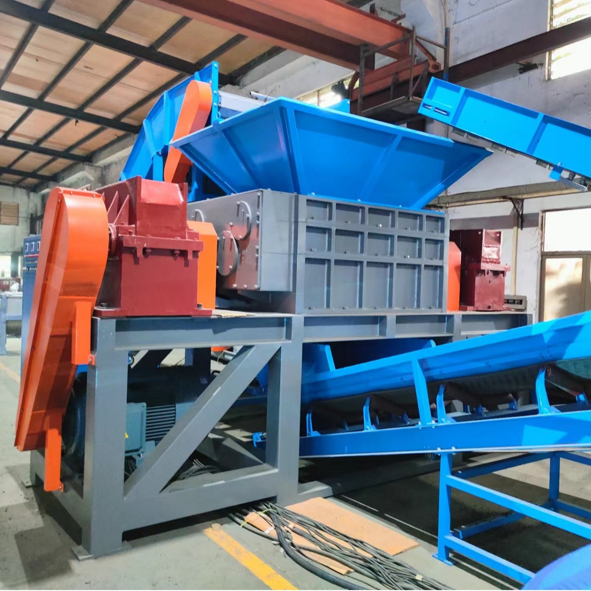 Our this production line is suitable for car tire recycling, with professional low-speed high-torque shearing structure, synchronously realizing crushing and shredding functions;