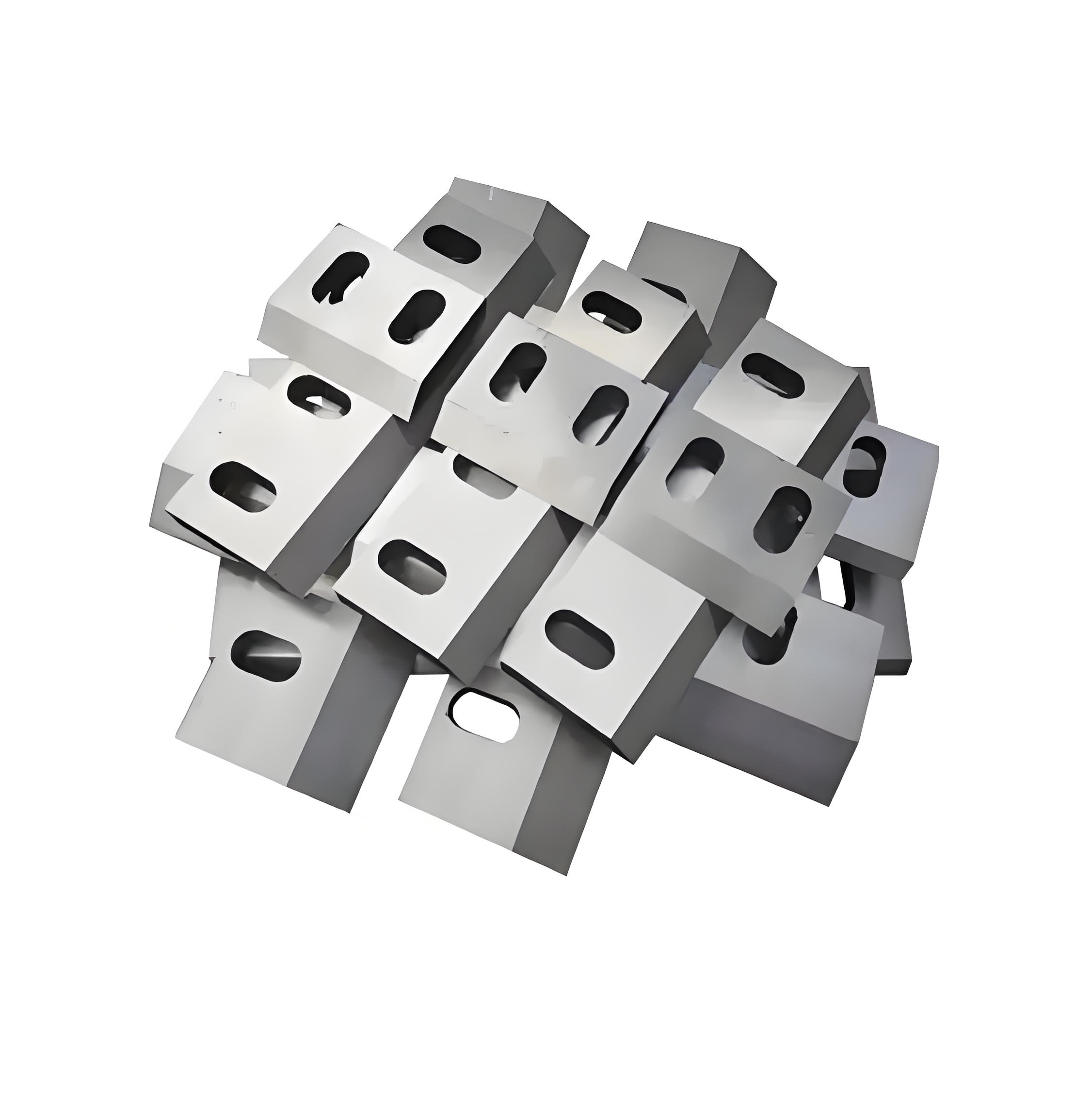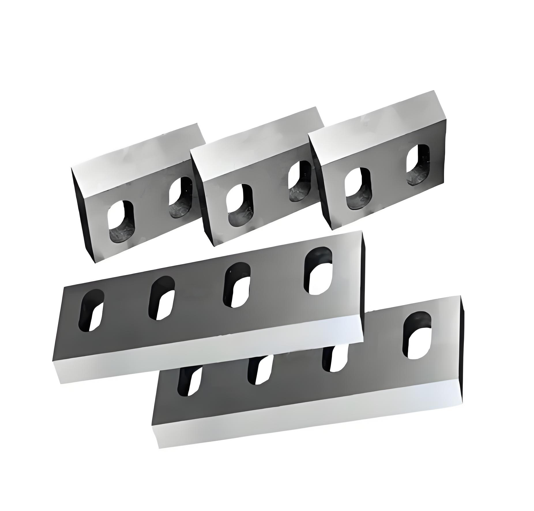 The materials of plastic crusher blades are mainly SKD11, D2, and DC53 etc. The hardness of the crushing blades can range from HRC50 to HRC62, and different hardness levels can be customized according to the requirements.